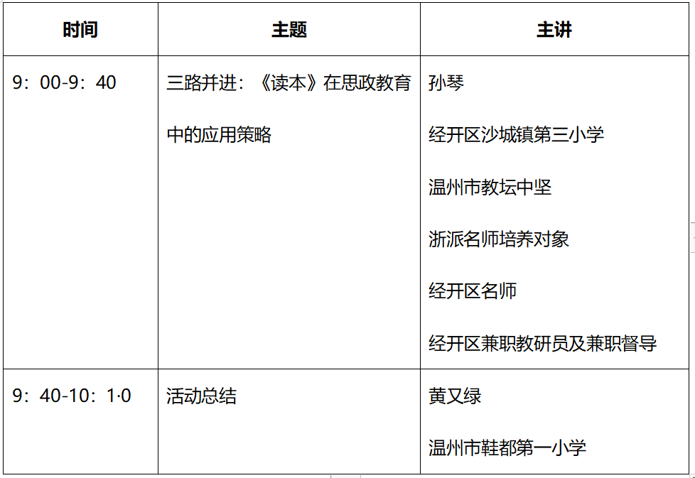 为了引领工作室全体成员认真学习《读本》,掌握《读本》教学的有效方法,促进课堂的有效实施,经研究,温州市黄又绿名师工作室决定开展推进《读本》教学研究专题学习培训暨工作室第三十三次活动。现就有关事项通知如下: