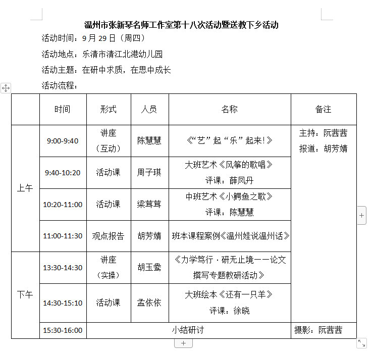 关于举行温州市张新琴名师工作室第18次活动的通知