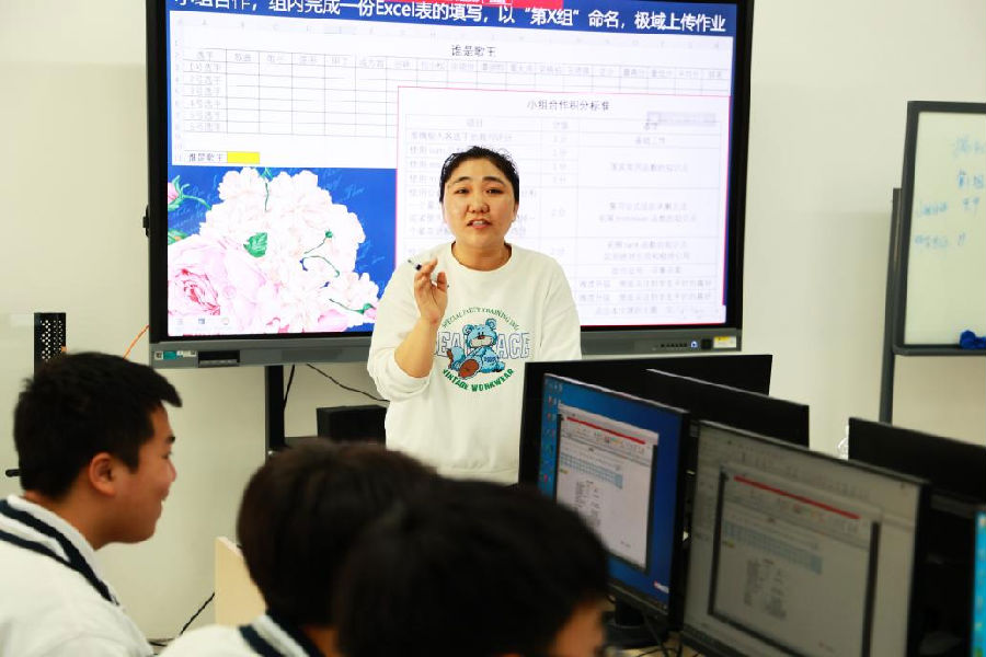 接下来,由浙江豪情汽车工业学校的吴肖肖老师进行了《Excel函数复习》的讲解。吴老师以“谁是歌王”为引入,通过小组合作的形式,根据“小组合作积分标准”,利用函数完成Excel表格的填写。课堂气氛活跃,学生积极性很高。