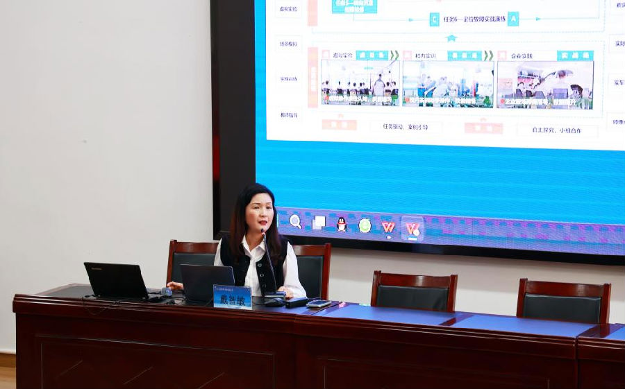 最后,由绍兴市职业教育教学研究室的戴智敏特级教师为我们带来专家讲座。戴老师从选题重构、教学策略与教学实施、课程思政等方面详细介绍了教学能力大赛的备赛策略,并结合丰富的国赛作品案例为我们讲解具体的设计思路,每位听众都大受裨益。