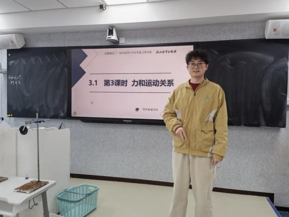 第一节课是来自温州市文成县实验中学钟刘通老师执教的九年级《机械运动》专题复习。钟老师以“小科和小学上学”的生活情境贯穿始终,通过骑行、步行等真实场景为学生创设了一个“学以致用”的学习情境,又将参照物选择、运动快慢比较、图像分析等知识点有机串联构建出一个“为用深学”的任务链,增强学习的趣味性和实用性。