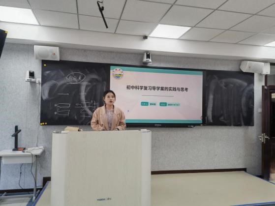 课后,蔡德鹏老师和田园园老师分别进行简单的说课。然后,来自龙湾区沙城中学的夏碎丽老师带来了精彩讲座《初中科学复习导学案的实践与思考》。深度探讨了《学思用合一》导学单几节展示课中的妙用。例如:通过“核心母题”的情境任务驱动学生开展复习;通过“导图梳理”和“方法总结”,促进学生举一反三和触类旁通,实现深度复习的发生;又通过“基础题”和“综合题”两个栏目对学生开展有针对性补偿训练,提高复习效率。