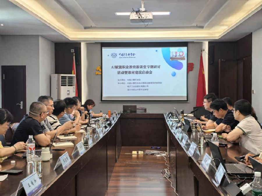 2025年7月27日,由温州市职业中等专业学校和温州市王恒心送教名师工作室联合承办的 “AI 赋能职业教育新课堂专题研讨活动暨教材建设启动会”在温州市职业中等专业学校圆满落幕。本次活动以“AI+程序设计基础”等9本教材为核心研讨对象,创新采用线下 + 线上同步形式,汇聚了杭州、北京、福建、辽宁、温州等地的重磅专家和一线教师,为人工智能与职业教育的深度融合注入新动能。